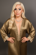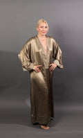 Crafted in a luxurious crystal-dusted fabric, this kaftan drapes beautifully with a fluid silhouette that flatters every shape. The wide sleeves and deep V neckline add drama and sophistication, while the shimmering crystal finish catches the light with every move perfect for evenings that call for quiet luxury with a touch of radiance.