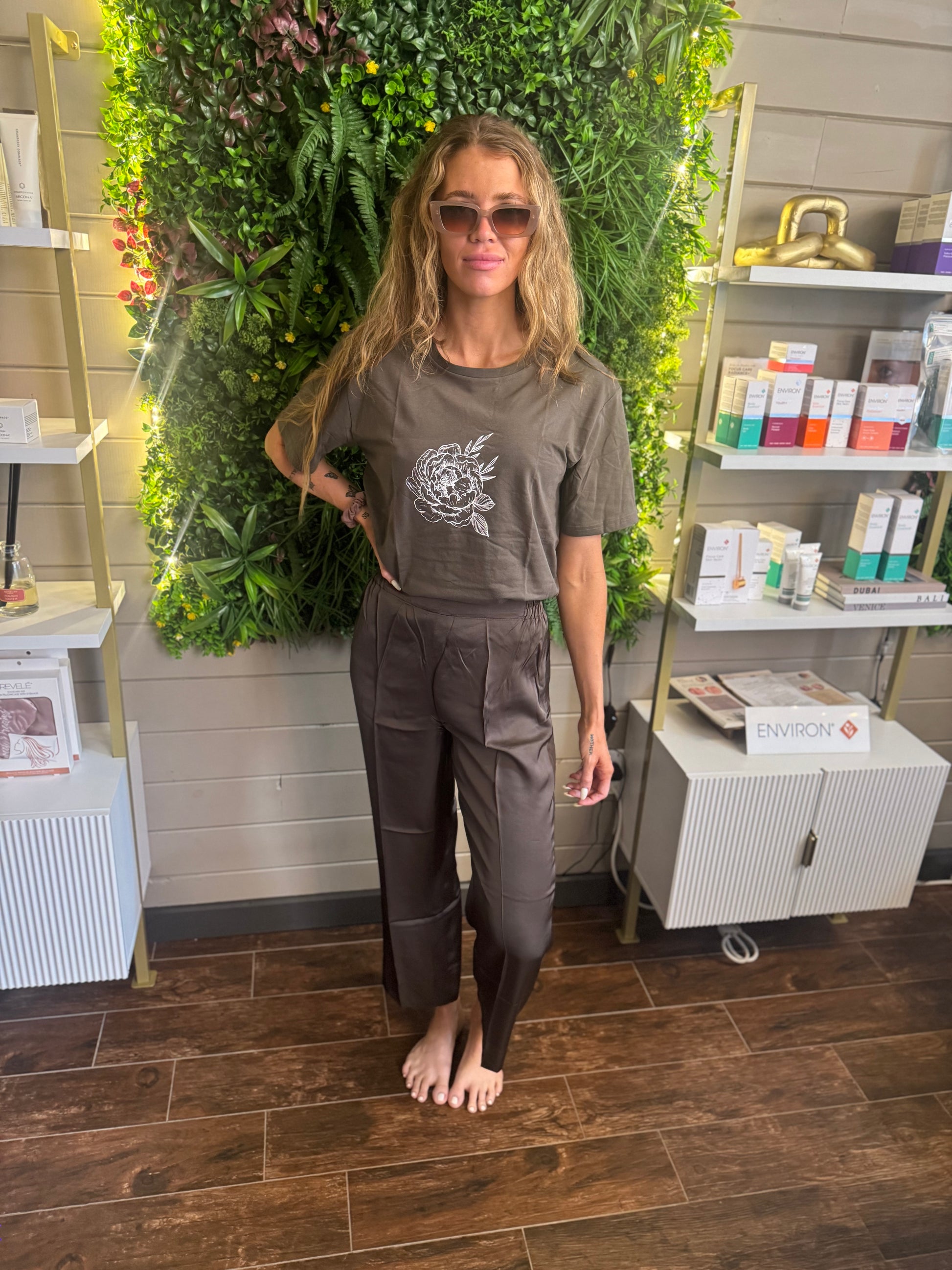 Cropped Cotton T-shirt with our signature peony in the front and The Skin Lounge logo in the back.