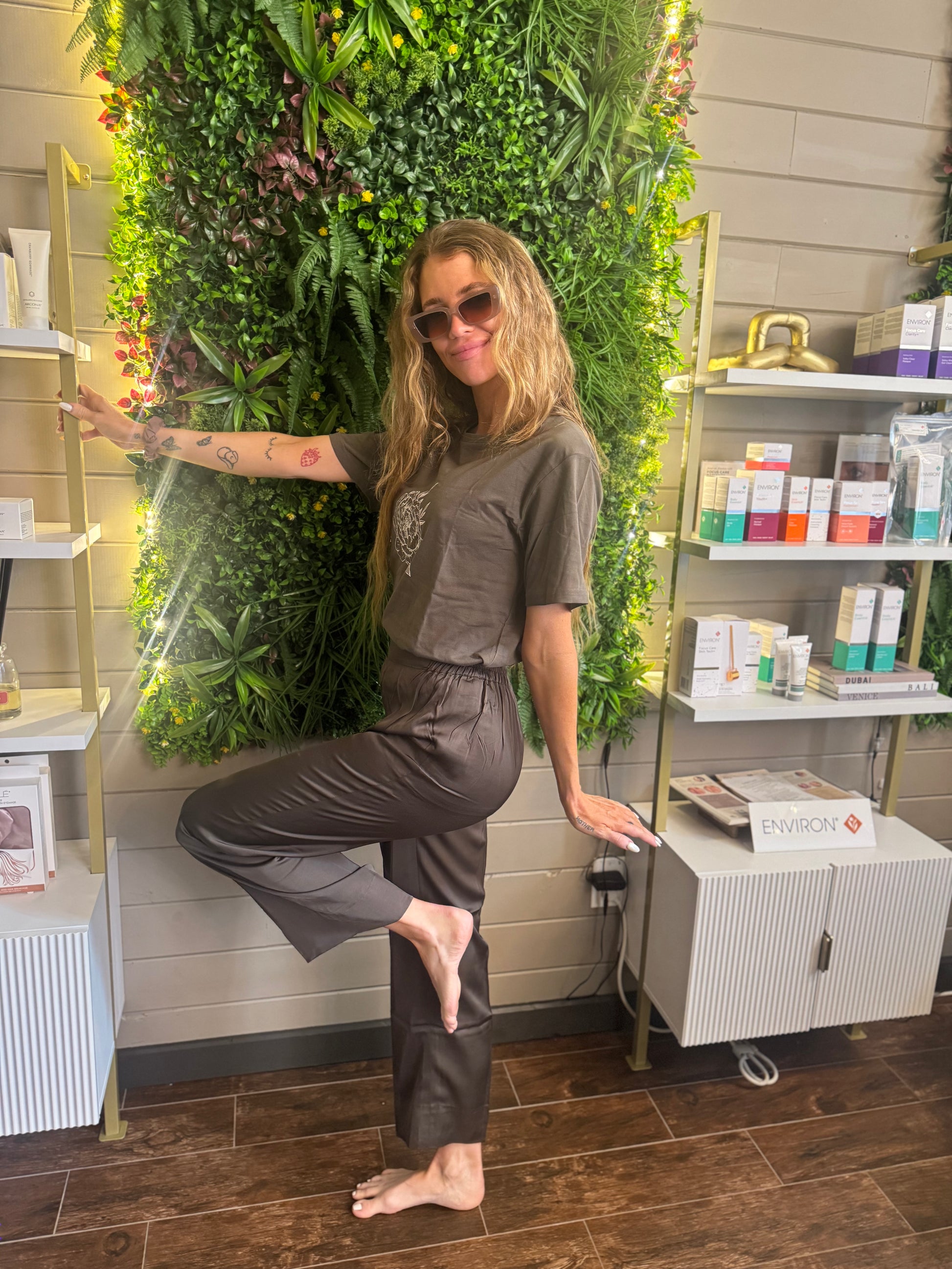 Our loungewear is designed to drape with ease. Please see our [Size Guide] (link) for exact measurements. If you’re between sizes, we recommend sizing up for a relaxed fit.